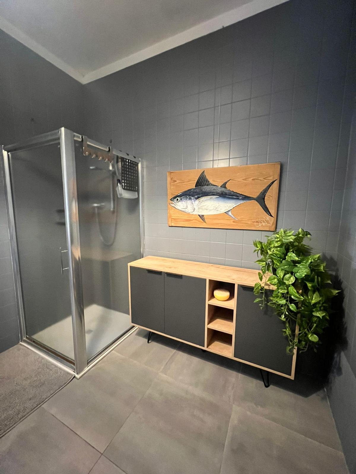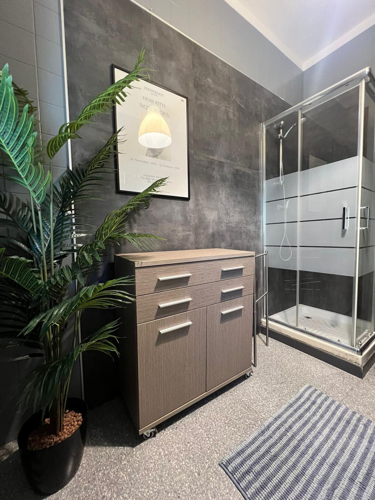 L'ampio bagno condiviso dispone di Box doccia, bidet, a richiesta sarà fornita la biancheria da bagno.