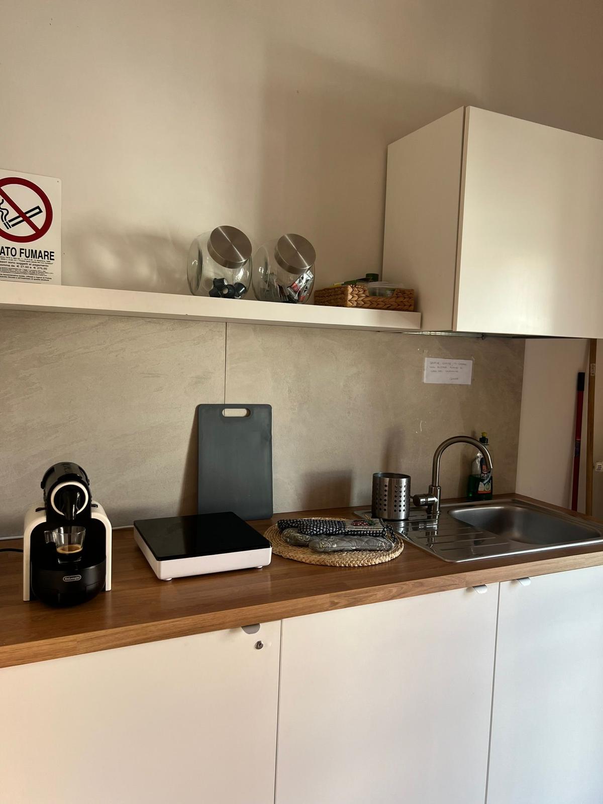 La cucina abitabile dispone di stoviglie, piano cottura, forno e macchina del caffè.